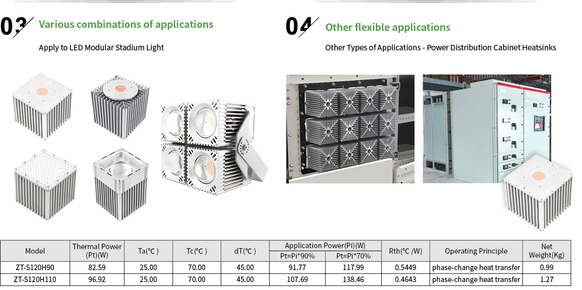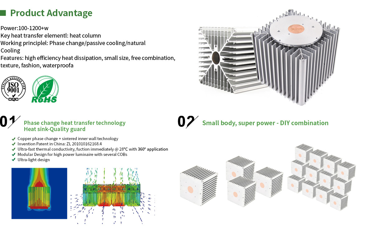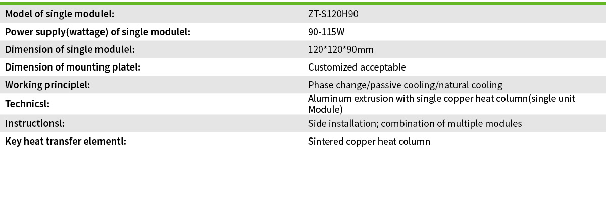 100-1200+W Square module natural cooling for LED lights and power distribution cabinet