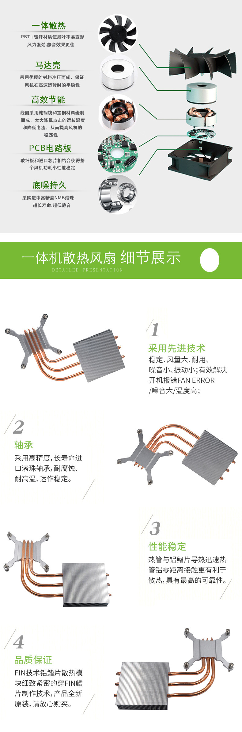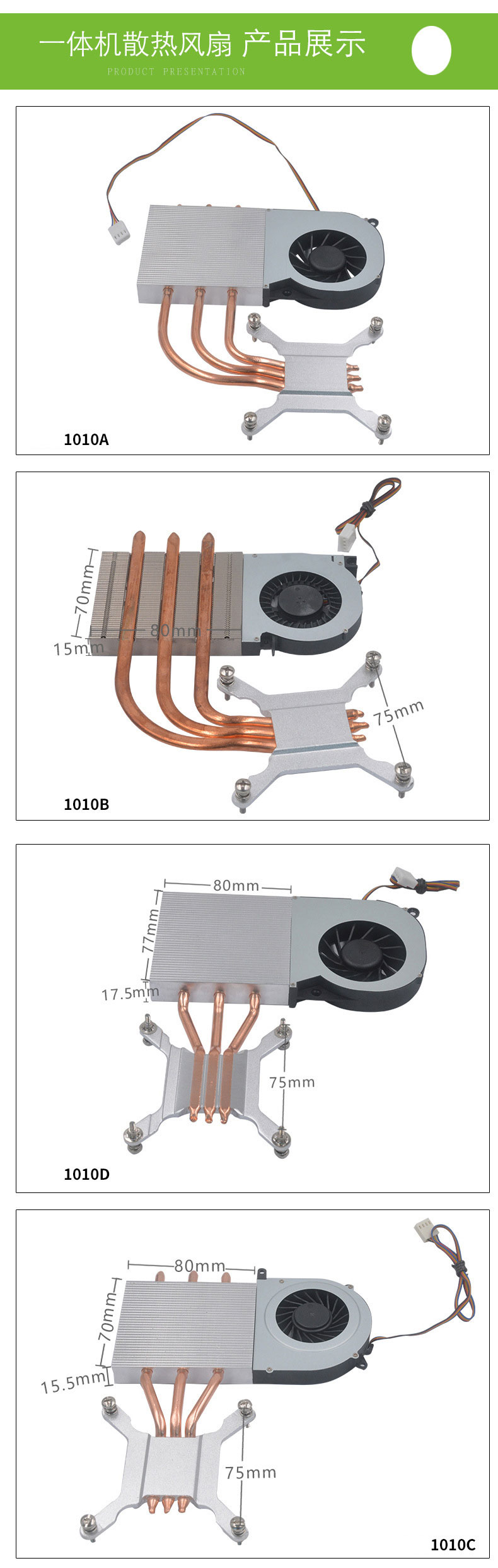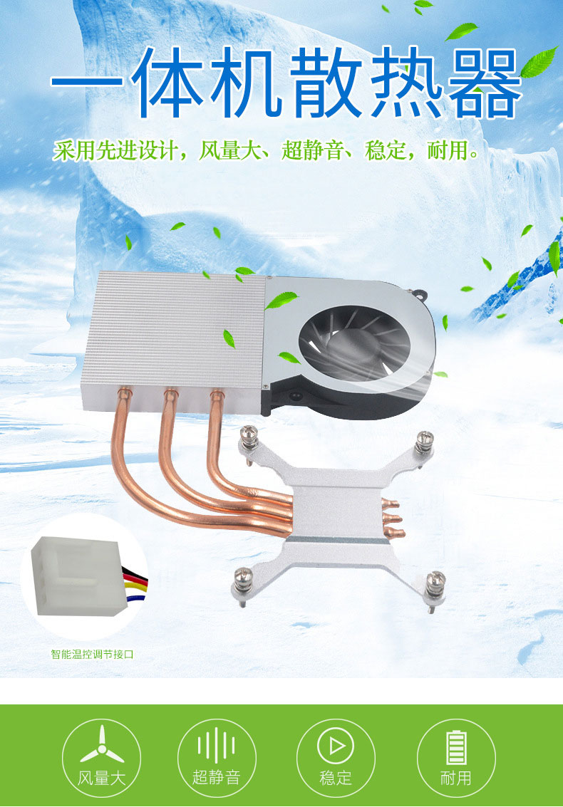 电脑一体机公模款三铜管散热器配防尘静音配风扇